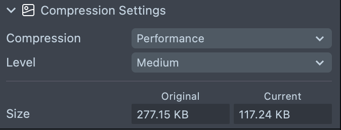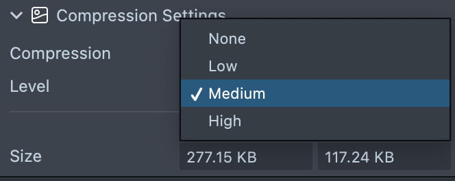 You can change the level of compression that is performed on your asset by clicking on the Level dropdown.
