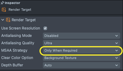 Asset Browserpanel. - In the Inspector panel, verify that MSAA is disabled.