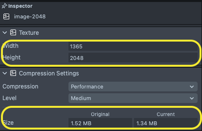 Sizecompression can create smaller texture sizes thanPerformance, this can severely impact loading time, FPS, and RAM in a negative way. You should always preferPerformancecompression when the Lens size impact is manageable in your Lens. Performance compression is also set as the default solution.- Please visit the Built-in compression guide to learn more about Lens Studio’s built-in compression feature.