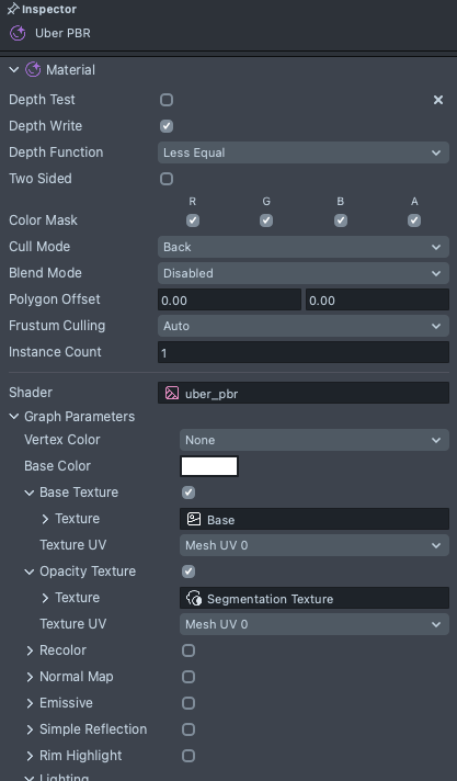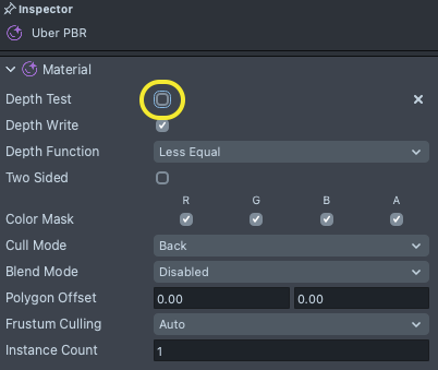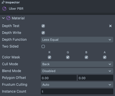 - Since 2D materials do not interact with each other by depth, it is recommended to turn off Depth Test and Depth Write to reduce the load on the device.