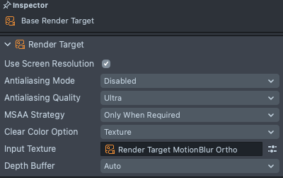 If Base Render Target takes in MotionBlur Ortho Incorrect: Input Render Target happens after receiver Correct: Input of Render Target is rendered before receiver