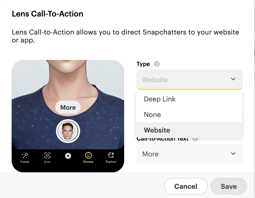 Members of our Snap Lens Network (SLN) also have access to the Lens Call-to-Action (CTA) feature, which allows you to include web links directly in your Lenses!