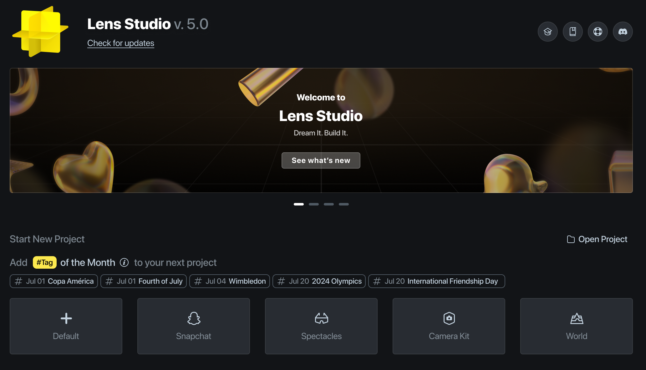 On the Lens Studio homepage, you will see the "Tags of the Month" section. You can hover over the tag to get inspiration on the type of Lens what to build.