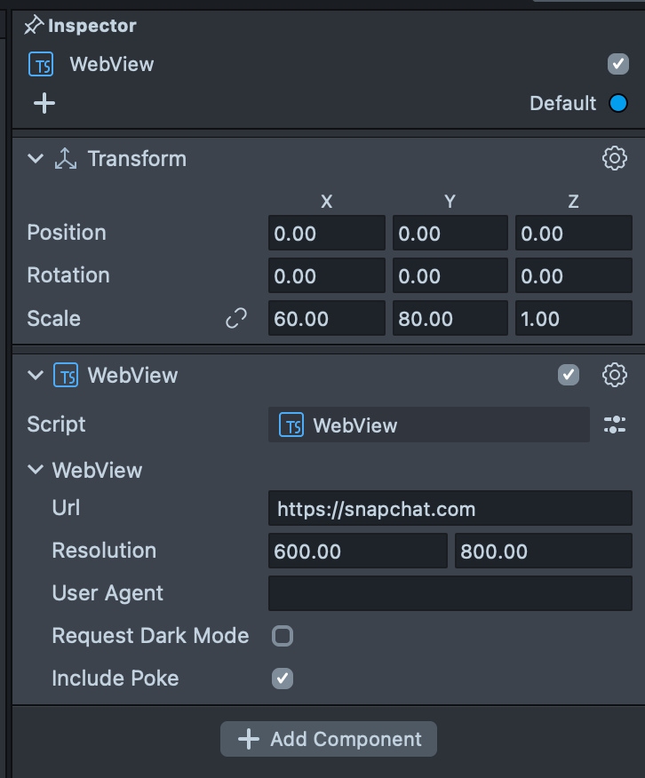 It is strongly recommended that creators start with the WebView from the Asset Library. This handles integration with the Spectacles Interaction Kit and ensures that the WebView life cycle events are correctly handled. This guide will cover usage with SIK + WebView script.