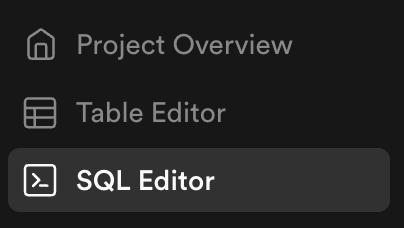 Inside Snap Cloud - Supabase dashboard, open SQL Editor from the left sidebar.
