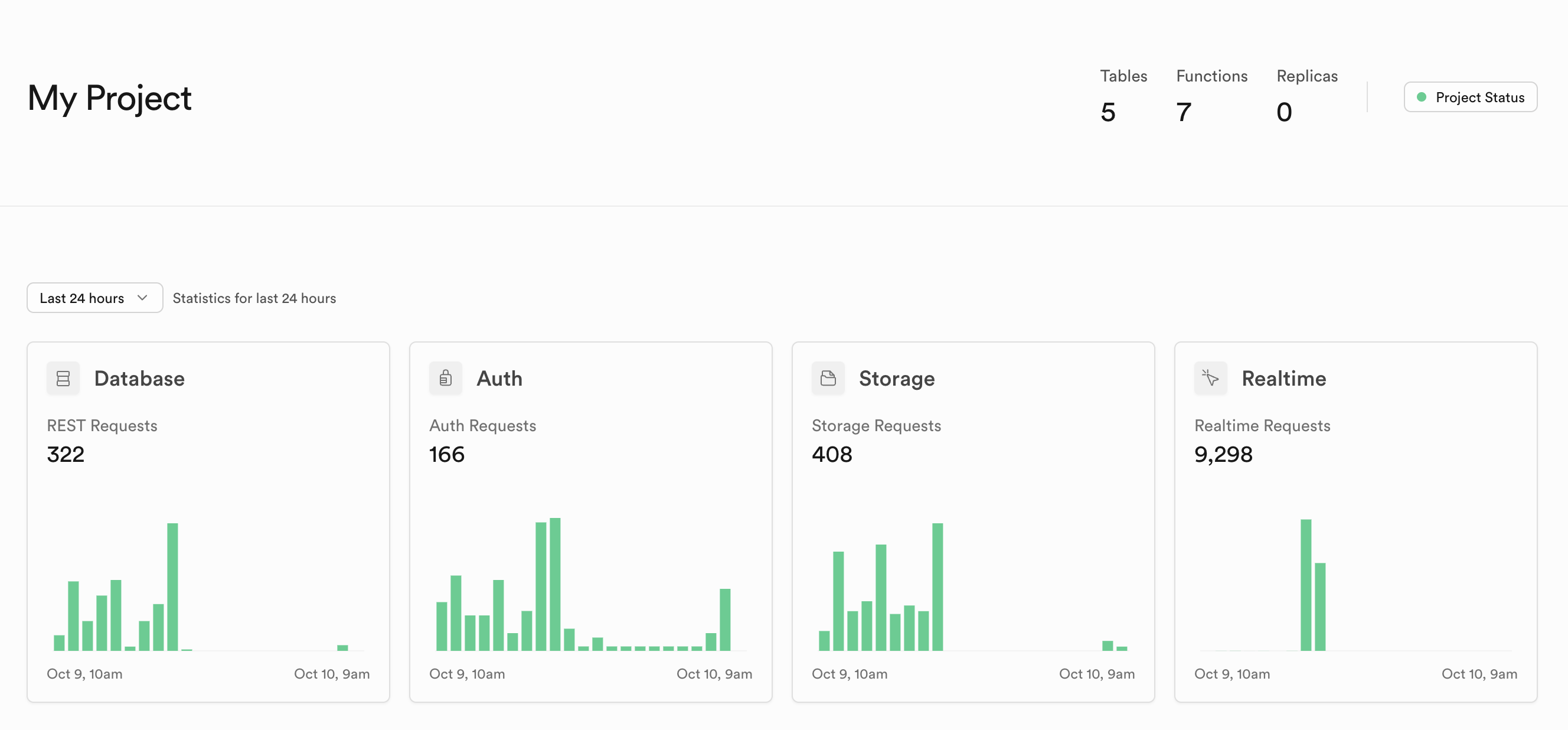 This will open up your project's main dashboard page where you can monitor project activity and configure all aspects of your backend.