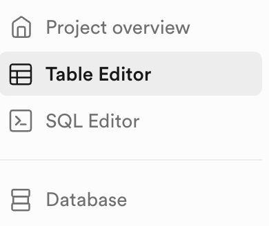 Let's create a new database table. On the left-hand sidebar, click on the Table Editor.