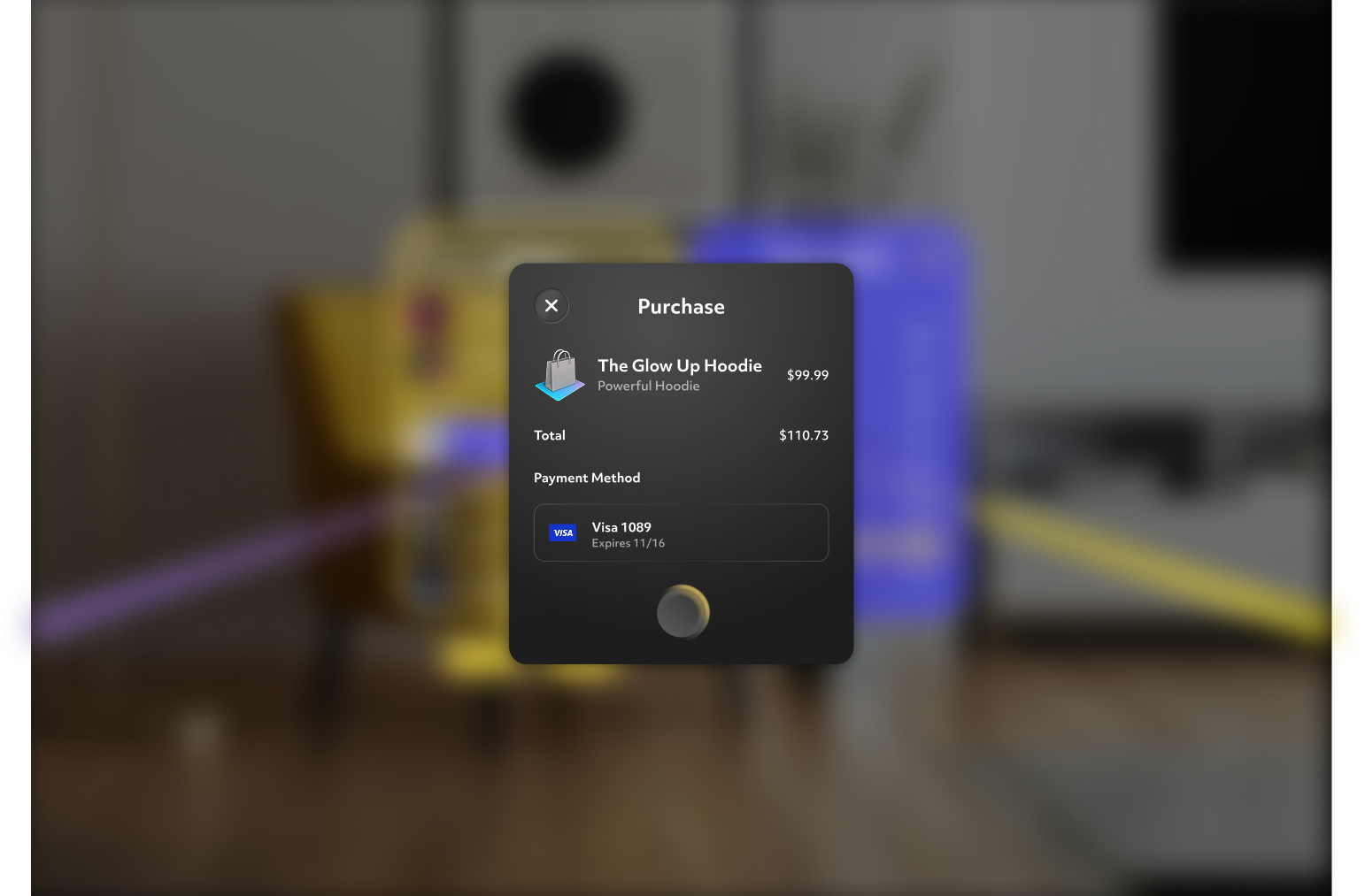 User performs a pinch-and-drag gesture or poke-and-drag gesture to confirm their intent to purchase. During this state, the system UI takes over and the Lens enters a paused state.