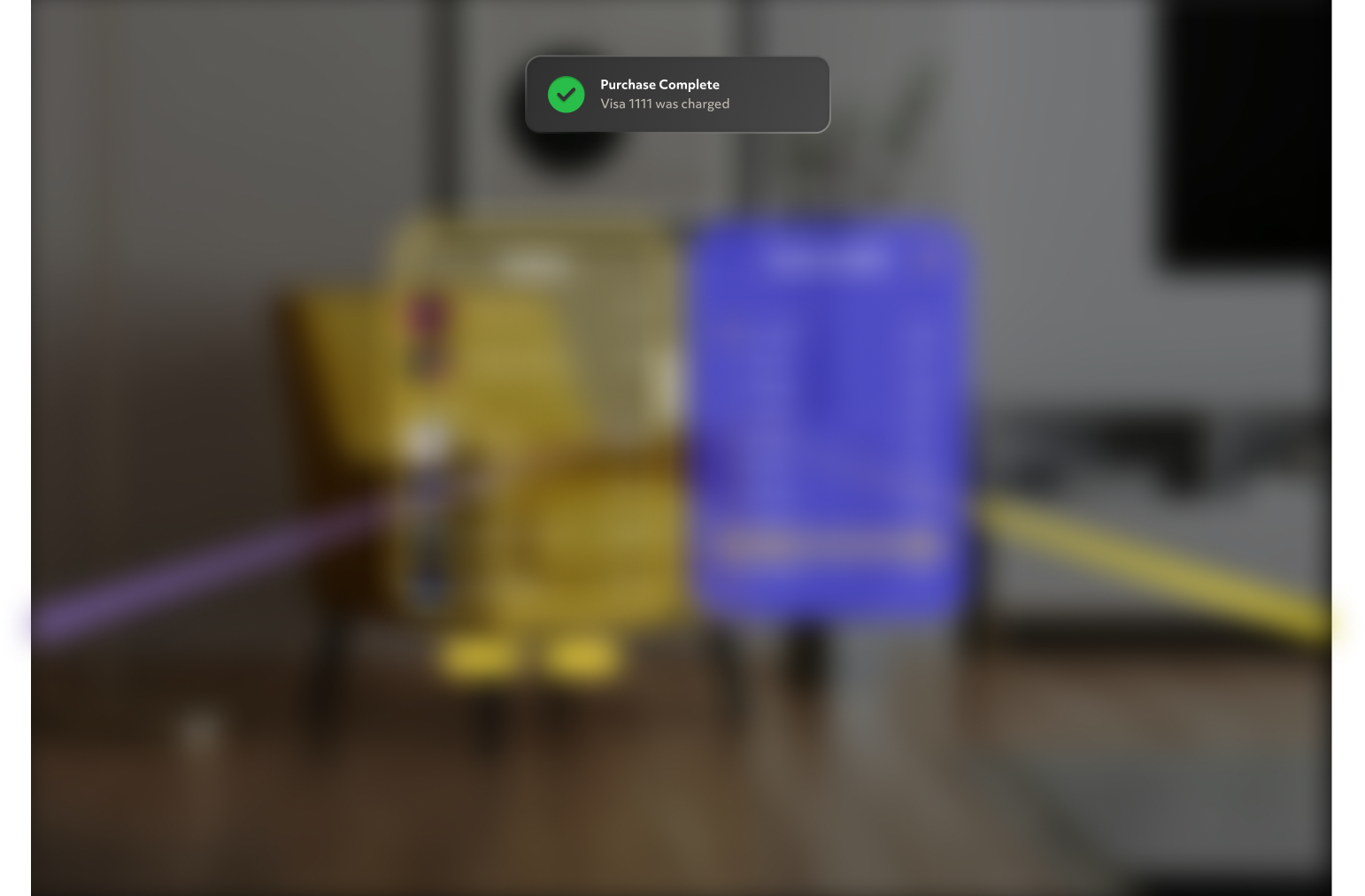 User receives a notification confirming the purchase is complete. The payment dialog closes and the user returns to the developer's Lens experience.