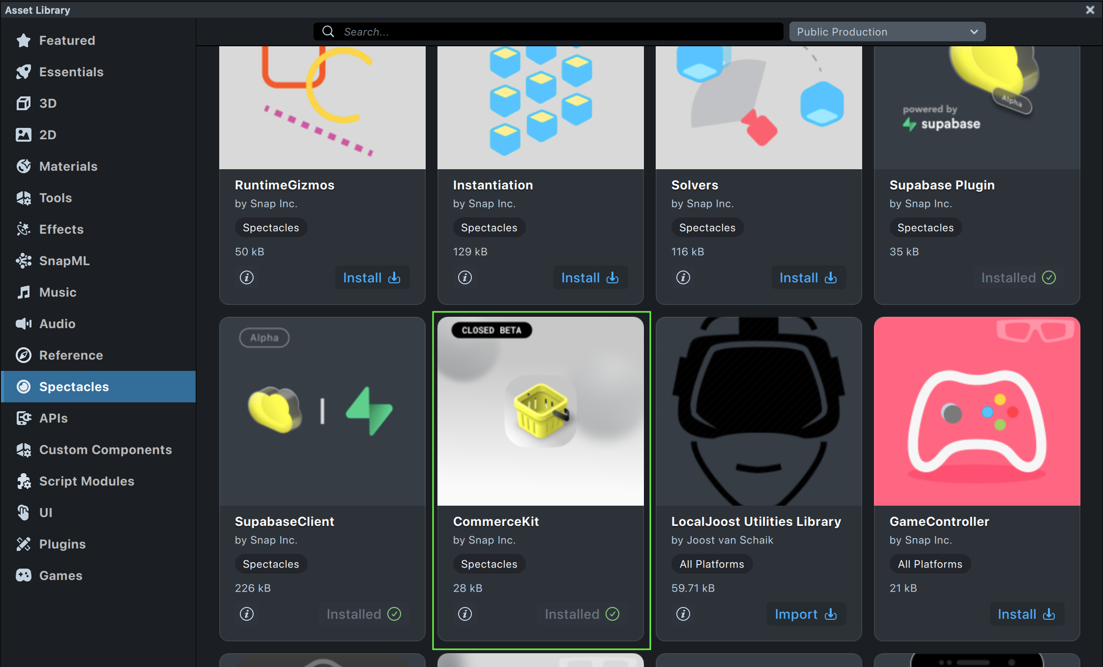 Commerce Kit enables in-Lens purchases directly within your Spectacles experience. Build monetized AR applications where users can buy digital products or premium features through secure payment processing via the Spectacles device. This guide shows you how to set up Commerce Kit, configure products, and implement purchase flows in your Lens.