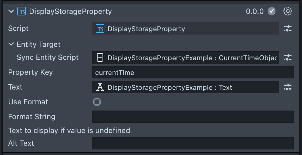 - Alt Text will be displayed if the value is undefined, such as before the session has connected or the storage property has not been defined yet.