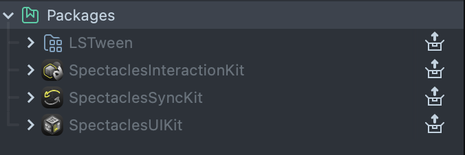 You can also unpack the Spectacles Sync Kit package by right-clicking and selecting Unpack. Unpacking enables direct editing of Spectacles Sync Kit but may complicate future upgrades to newer versions. Additionally, when unpacked, import components and modules in your TypeScript files using SpectaclesSyncKit rather than SpectaclesSyncKit.lspkg in your import path.